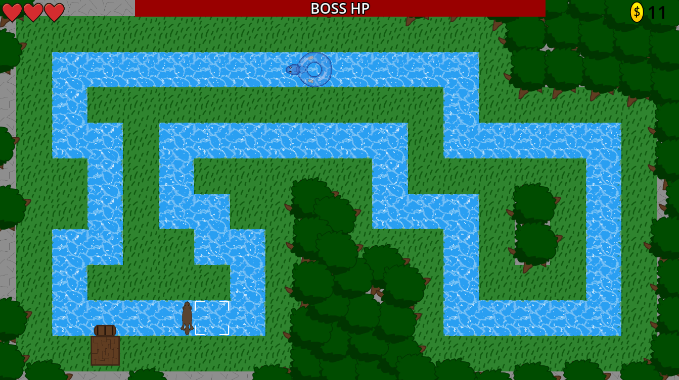 Tower defense where you can't beat the level until you defeat the boss that chases you around the loop!